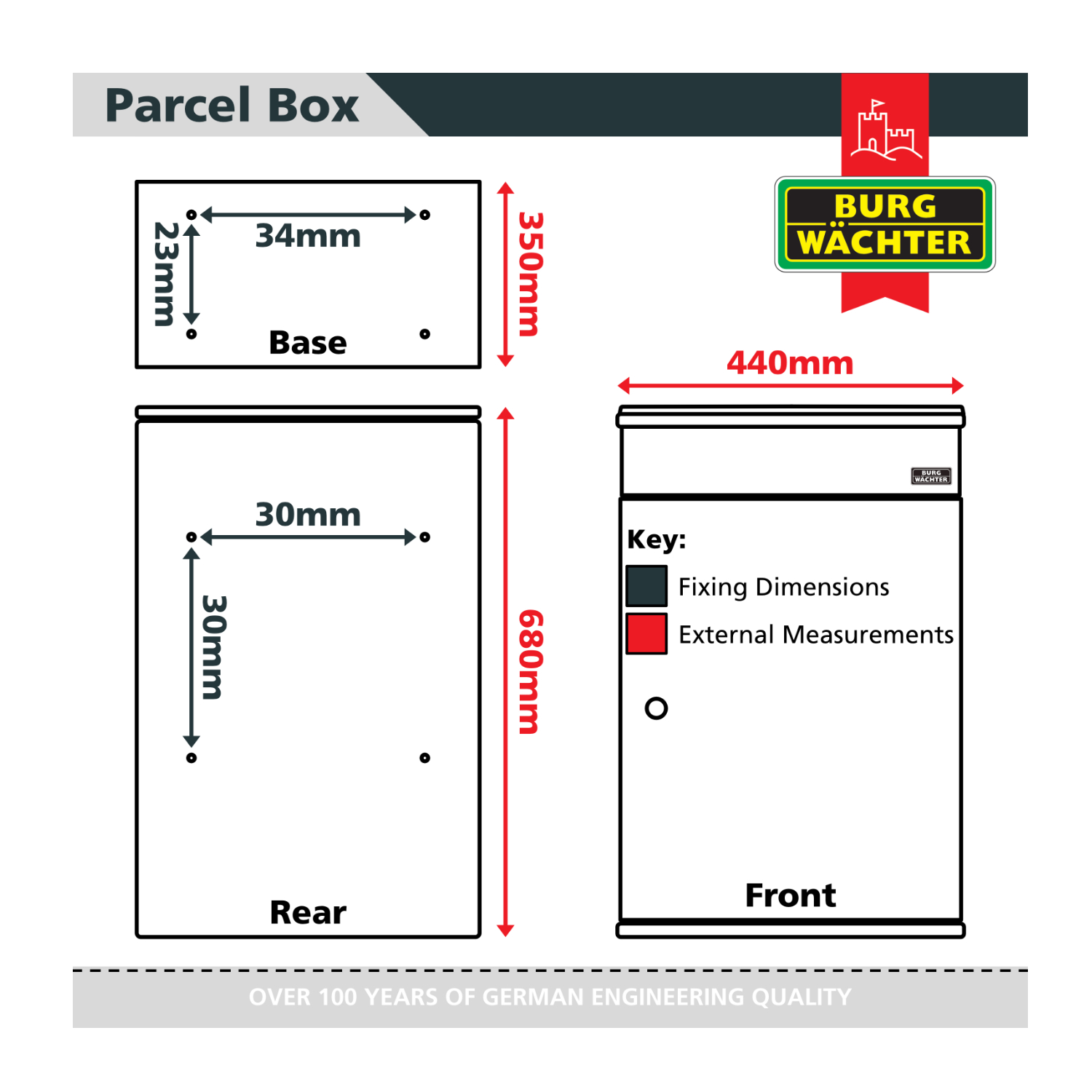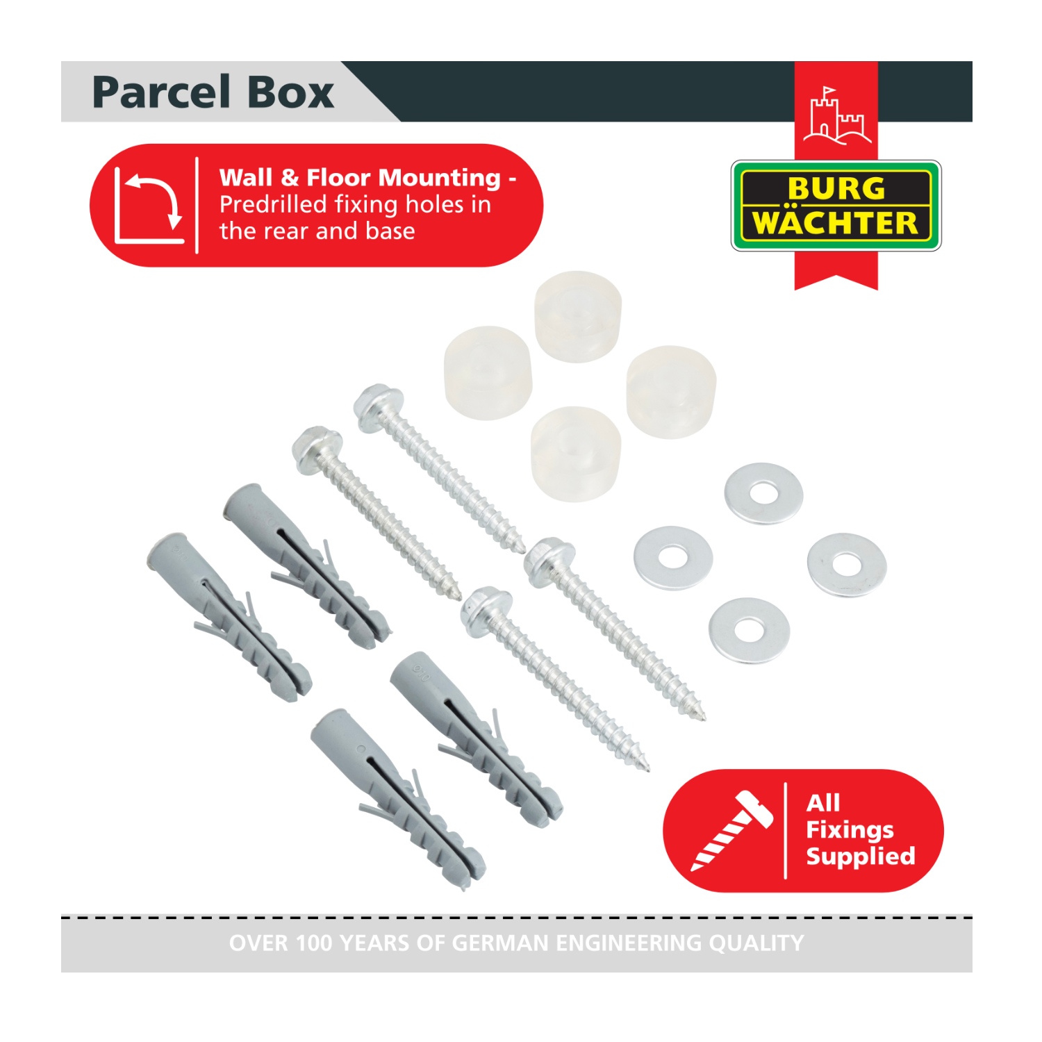 Designed for easy installation, with all necessary fixings included, the wall mountable parcel box can be attached to walls, gates, fences or even the floor offering a versatile and durable solution for outdoor parcel delivery.